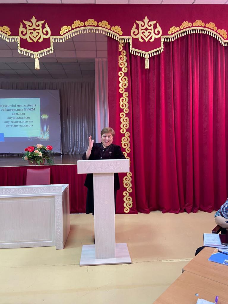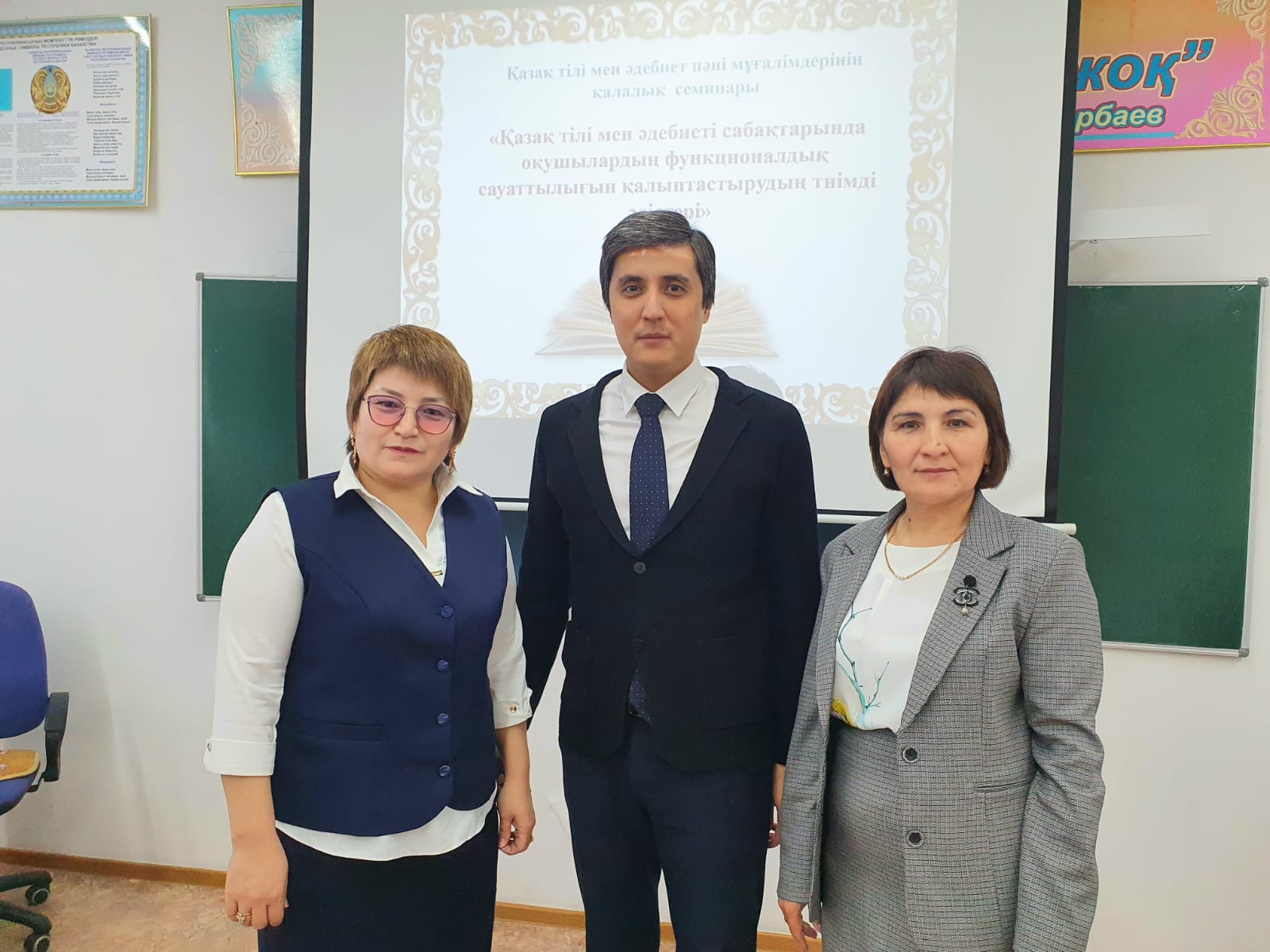 Семинарда«Білім беру мазмұнын жаңартуды іске асыру жағдайындағы жаңа тәсілдерді сабақта тиімді пайдалану түрлерін ұсынды.Семинарға Ғ.Қайырбеков атындағы №9 жббм-нің қазақ тілі мен әдебиеті пәнінің мұғалімі Досмаганбетова Жумагул Тасболатовна мен №2 мектеп-лицейінің қазақ тілі мен әдебиеті пәнінің мұғалімі Адильханова Лаззат Оксикбаевна қатысты Білім беру мазмұнын жаңарту жағдайында қазақ тілі мен әдебиеті пәні мұғалімдерінің кәсіби дамуына ықпал ету, оқушыларға қазақ тілі мен әдебиеті пәнін оқытуда «жұмсақ» және «қатты» дағдыларды дұрыс пайдалану жолдарын көрсетті. Коучинг пен сабақтарда ойлау қабілеттерін ашатын әдістерді қолдана отырып, жаңашыл сабақтар өткізу, қазақ тілі мен әдебиеті пәнін оқытуда оқушылардың шығармашылық дағдыларын қалыптастыру бағытында жұмыстарды тиімді ұйымдастырды.