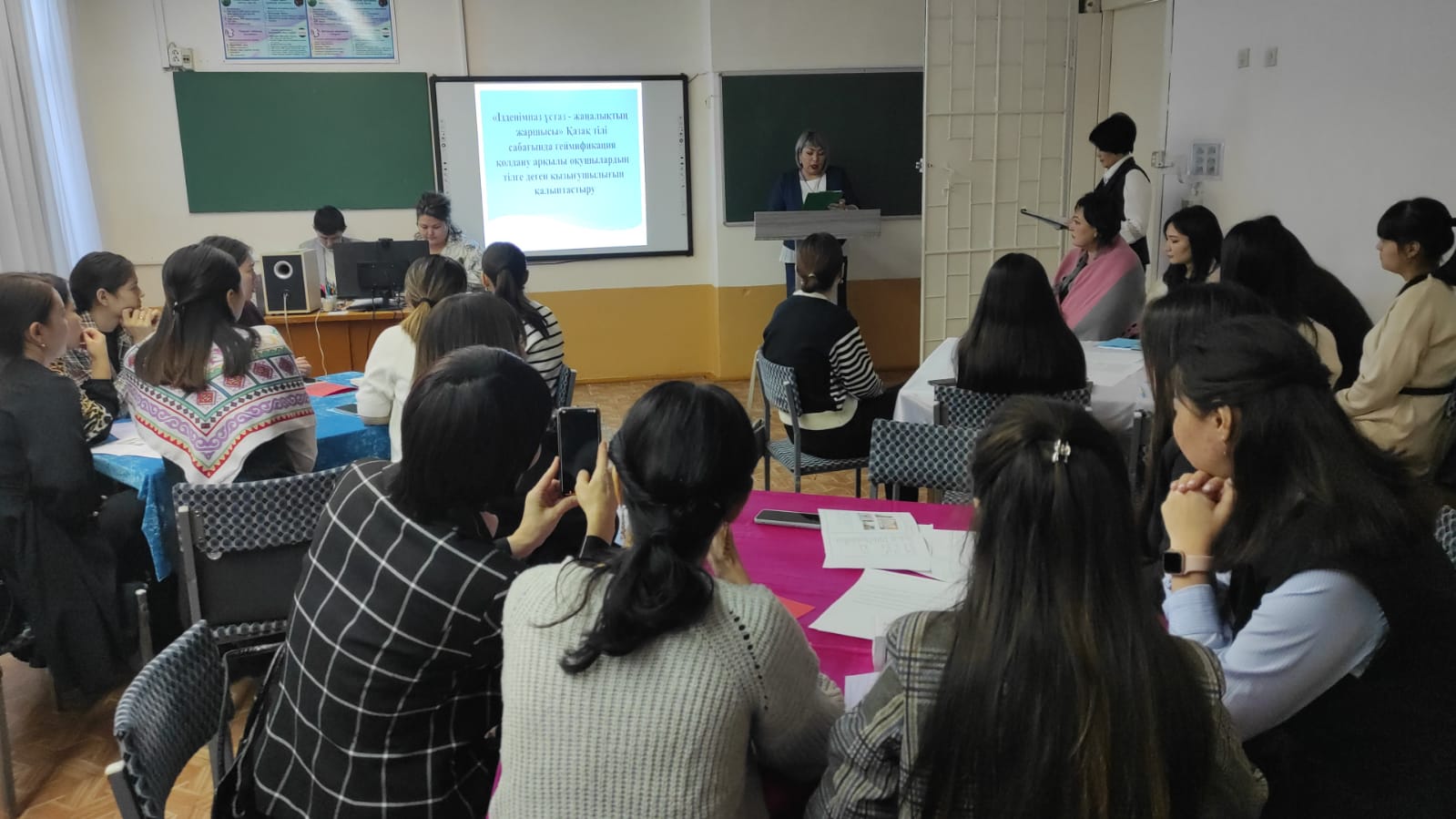 Қазақ тілі мен әдебиеті пәні мұғалімдерінің Әдістемелік бірлестік жұмысы жөнінде ӘБ жетекшісі Д.Т.Агитаева мәлімдеме жасаса, «Қазақ тілі сабағында геймификация арқылы оқушылардың тілге деген қызығушылығын қалыптастыру» тақырыбында коучингтың теориялық бөлімінде қазақ тілі мен әдебиеті пәні мұғалімі Д.С.Сулейменова баяндама жасады.