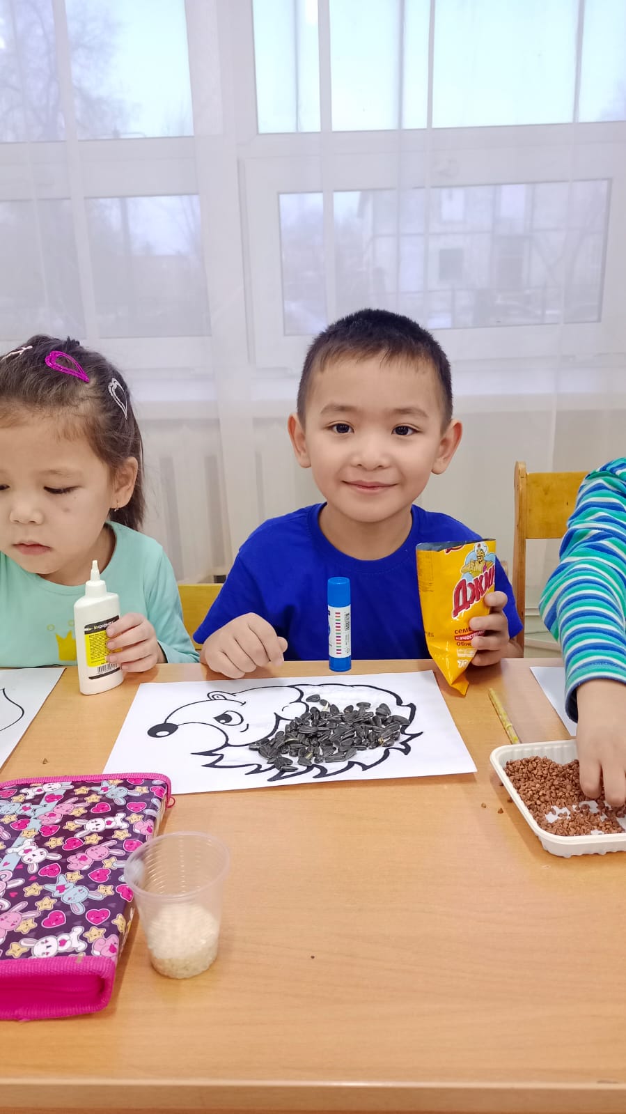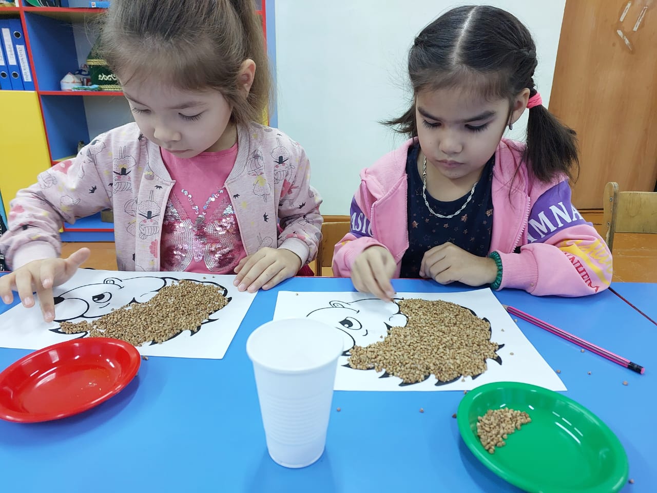 №10 жалпы білім беретін мектептің мектепалды сынып тәрбиеленушілері «Қыран елім – Қазақстаным» тақырыбы бойынша дәнді-дақылдардан кішкентай суреттер түрінде , үш өлшемді фигураларды шығару, жапсыру арқылы күрделі жұмыс түрлерін жасады.