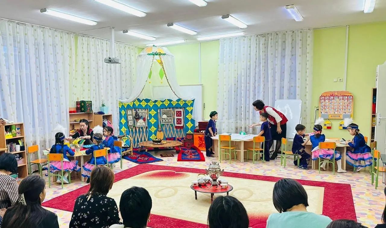 қазына» атты тақырыпта балаларға ұлттық құндылықтар мен ойындар - қазақ халқының ерте заманнан қалыптасқан дәстүрлі ойын - сауықтардың бір түрі. Осы ұлттық ойындар арқылы баланың ұлттық сана сезімін қалыптастыра отырып, дене бітімінің шынығуына да толық оң әсерін беретіні анық деп ұйымдастырылған іс – әрекет өткізді. Балалардың жас ерекшеліктерін ескере отырып, ойындар мен тапсырмалар қол жетімді болды. Қызықты ұлттық ойындар балаларды қызықтыра білді.