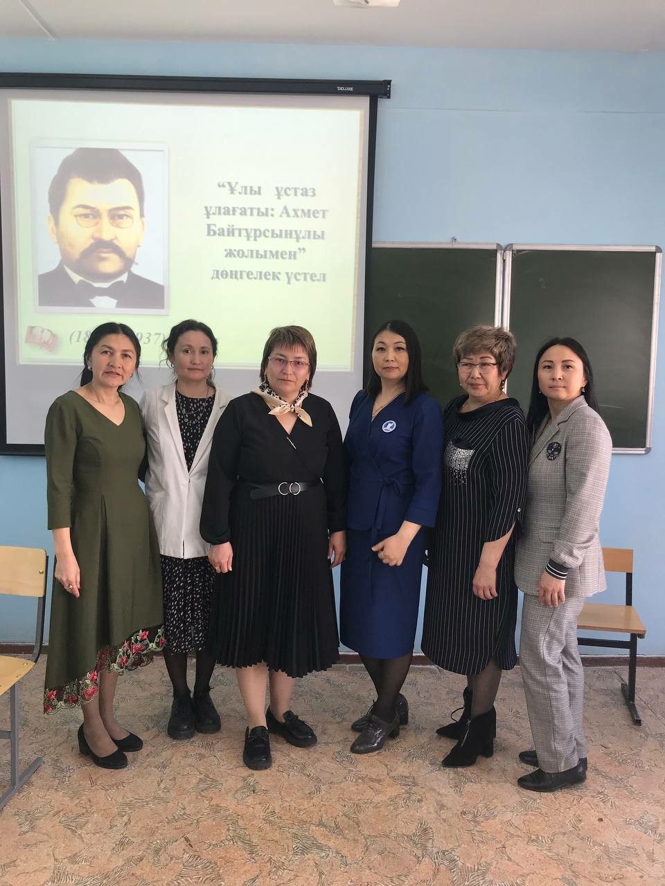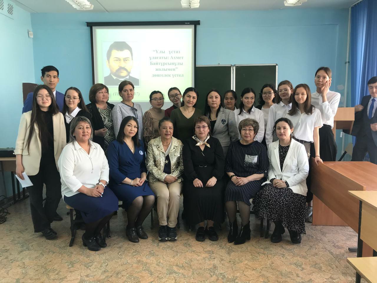 Ұлт ұстазы А.Байтұрсынұлының мұрасы мен ұлт руханиятына қосқан үлесін жас ұрпаққа кеңінен насихаттау, олардың жан-жақты дамуына мүмкіндік беретін алаң қалыптастыру мақсатында өткен дөңгелек үстелде "А.Байтұрсынов тағылымы" атты республикалық интеллектуалды сайысқа қатысқан қазақ тілі мен әдебиеті пәнінің болашақ мамандары яғни 4 курс студенттері оқушыларды ойталқыға шақырып,ғылыми жолға түсудің бір қырын түсіндіріп өткендей болды.(ҚББ әдіскері Ж.Д.Жумагулова)