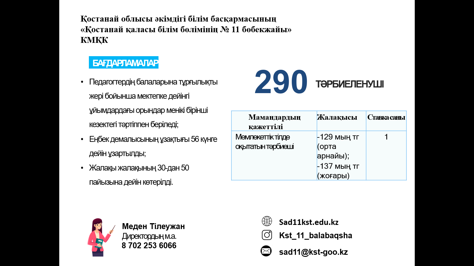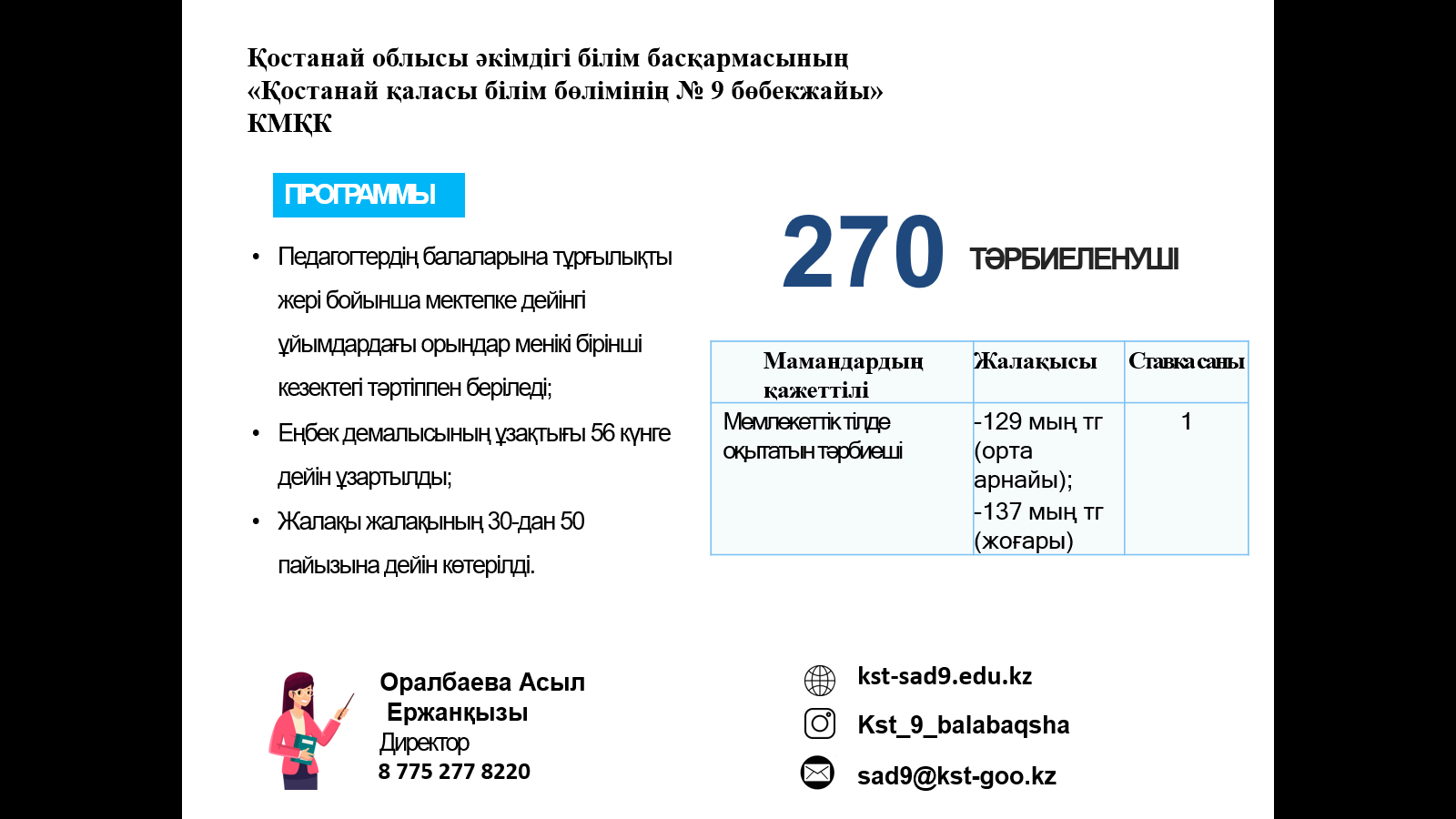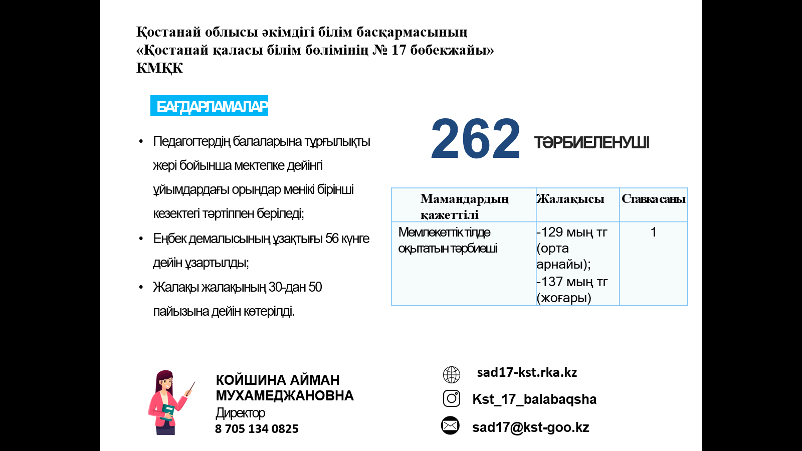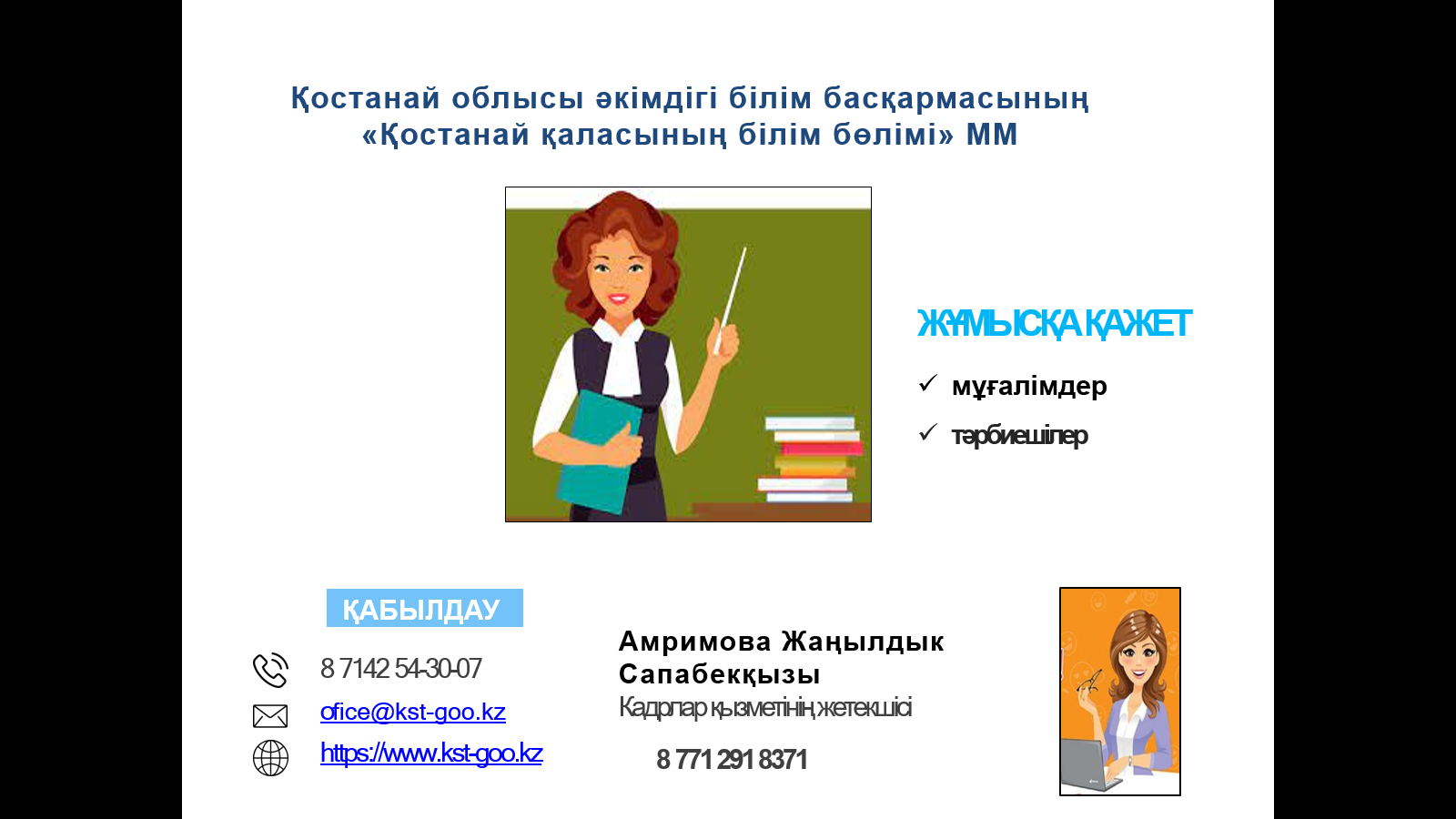 ЖҰМЫСҚА ҚАЖЕТ: мұғалімдер, тәрбиешілер