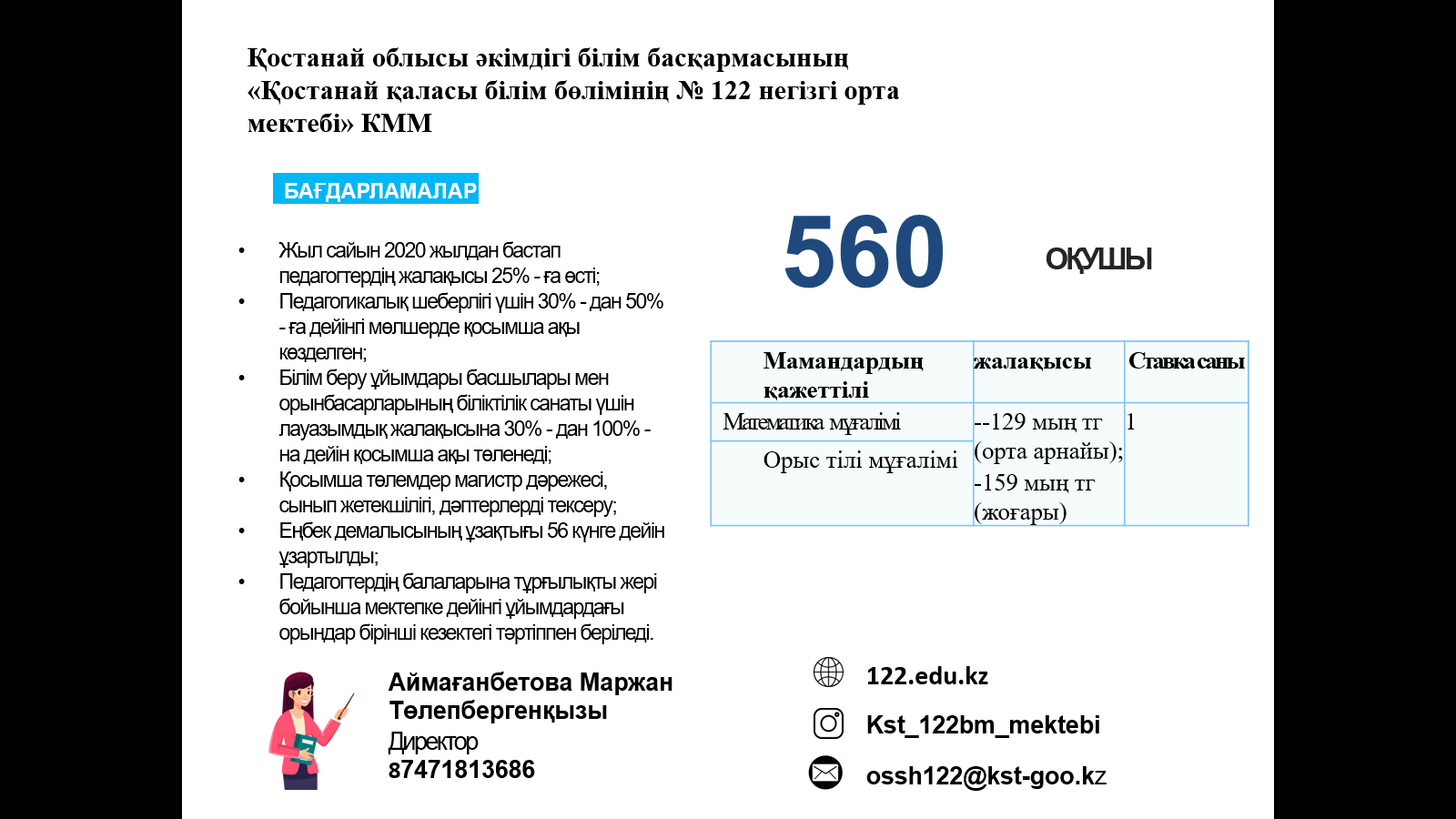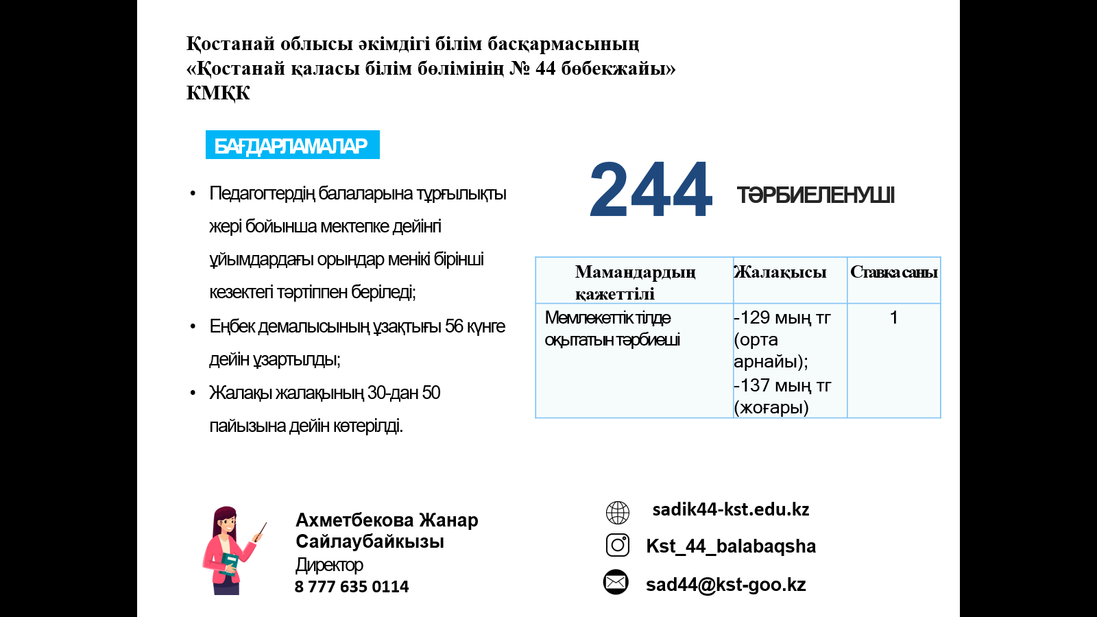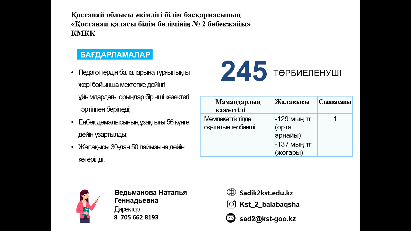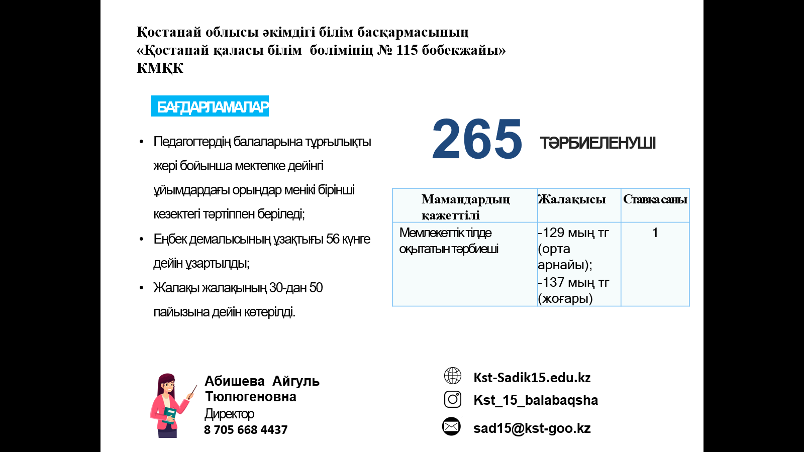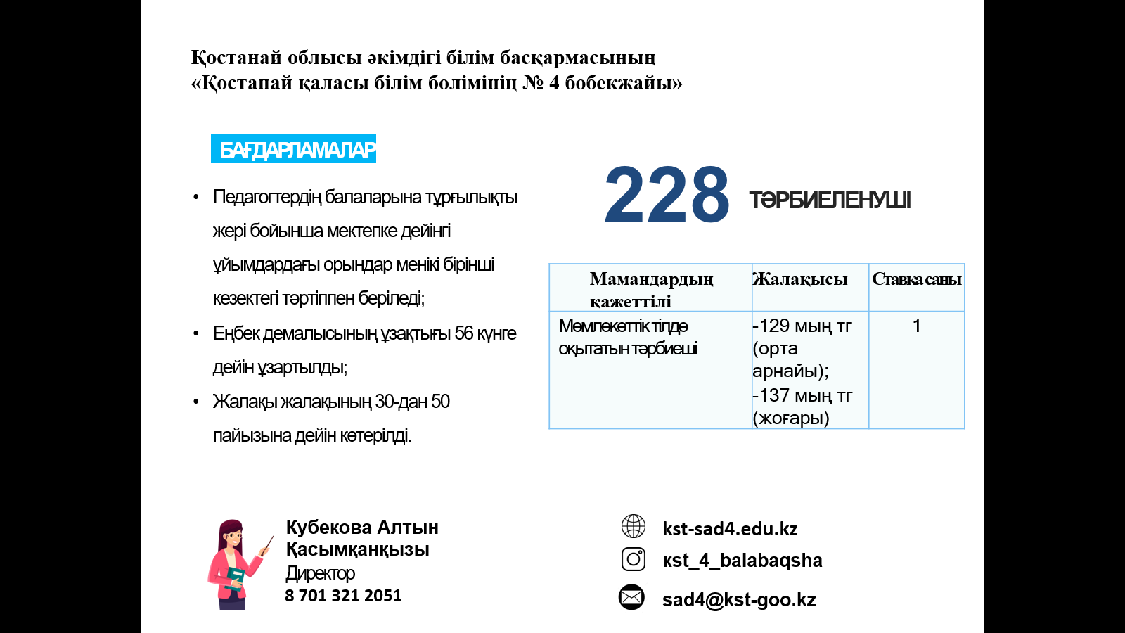 ЖҰМЫСҚА ҚАЖЕТ: мұғалімдер, тәрбиешілер