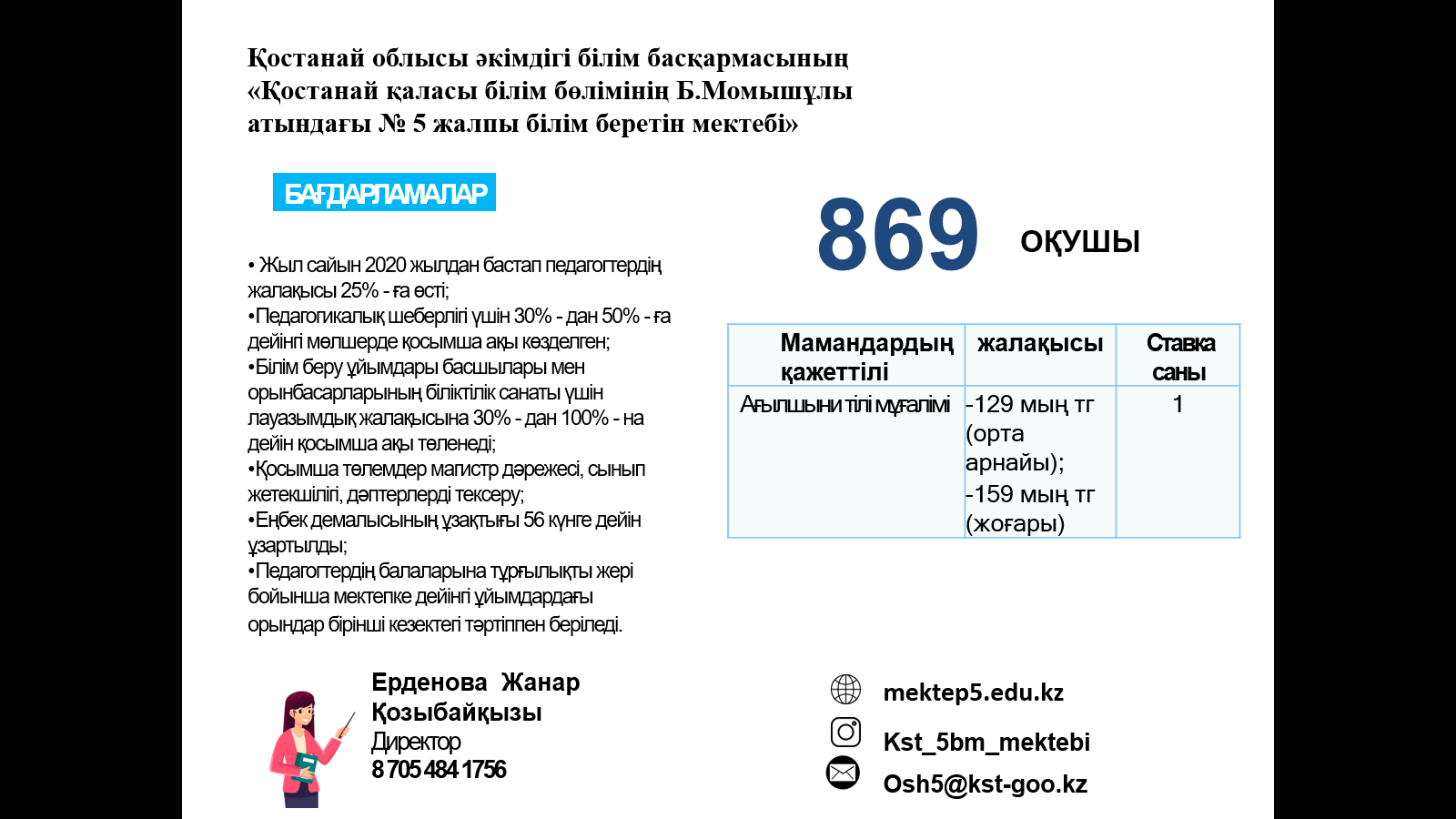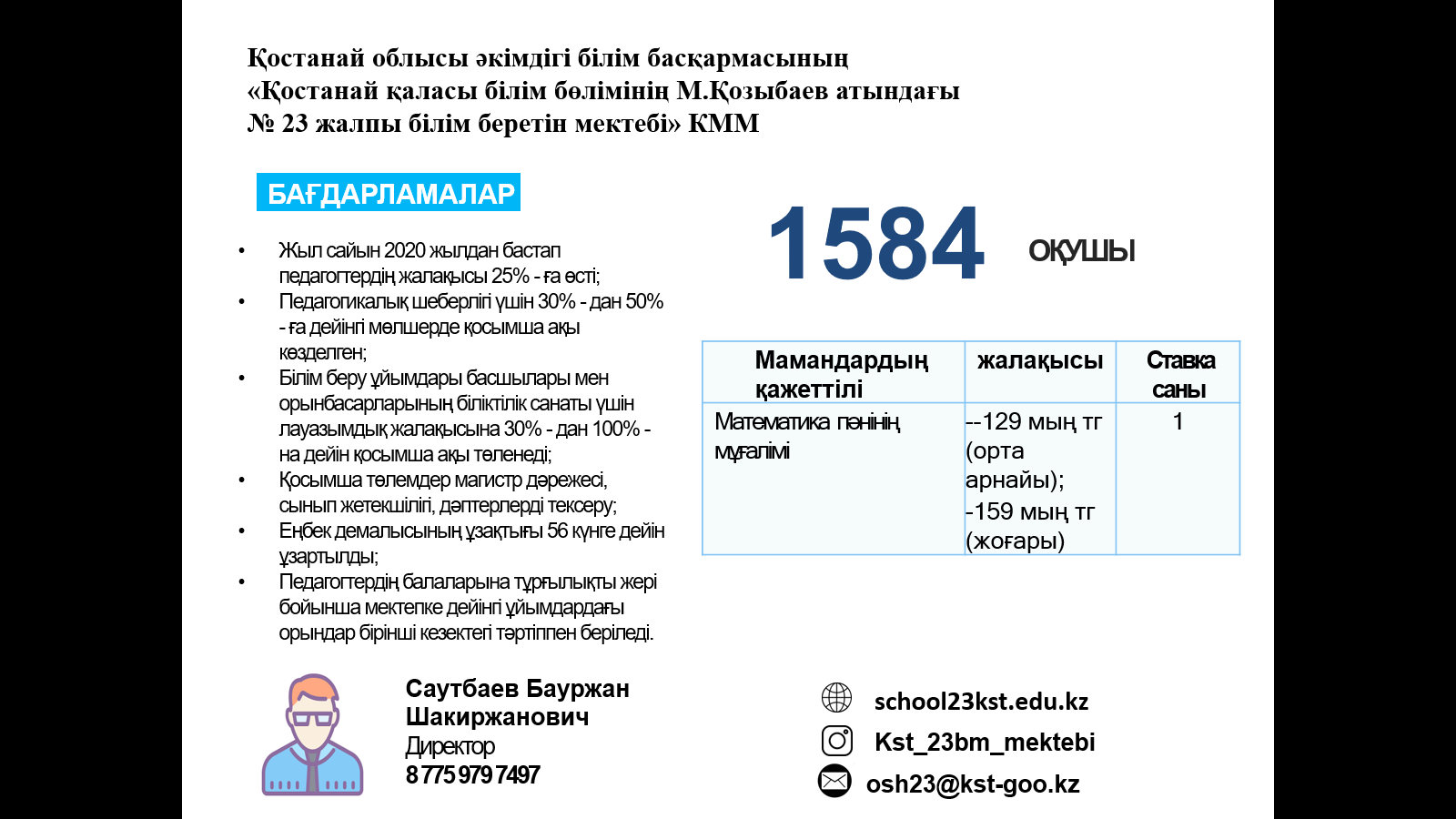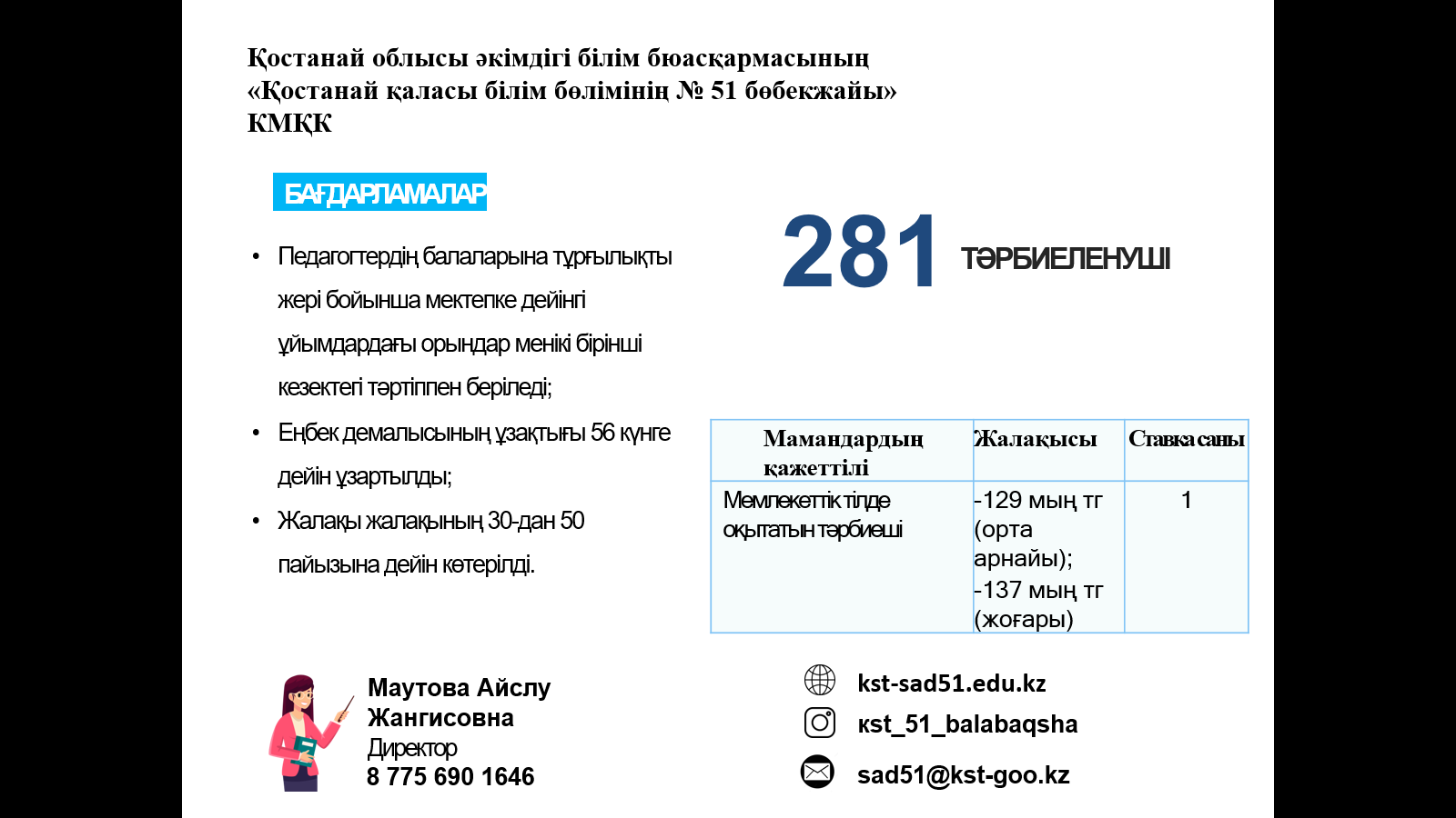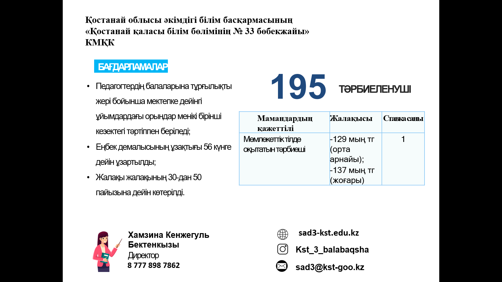 ЖҰМЫСҚА ҚАЖЕТ: мұғалімдер, тәрбиешілер