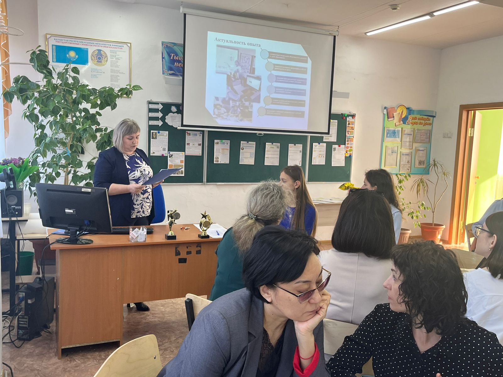 Педагоги школы Кузембаева Л.А., Сухинина С.В., Конник Л.В., Гуляева Л.Д., Оспанова Р.К., Нургазина Н.О., Садуакасова Г.Р., Досмагамбетова А.Б., а также учителя из ОШ им.Ә.Бокейхана Бекмурзина Ж.М. и Байсаматова Б.М. продемонстрировали материалы из опыта своих работ.