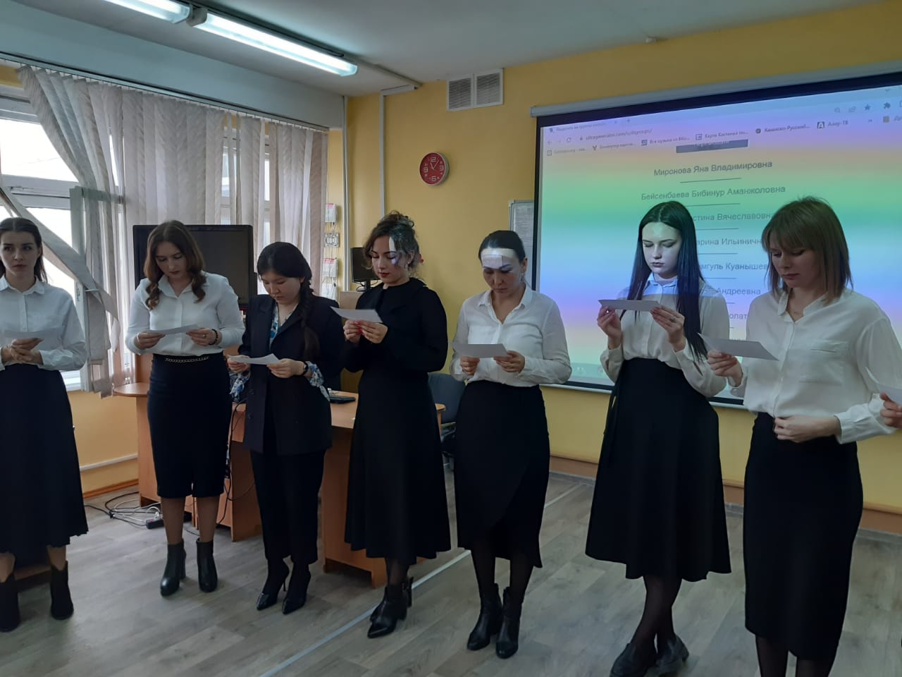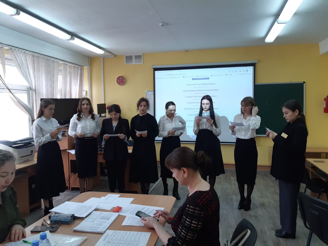 В завершении семинара, гостей ждал сюрприз, с поздравительным номером выступили учителя школы со своими дочерьми.