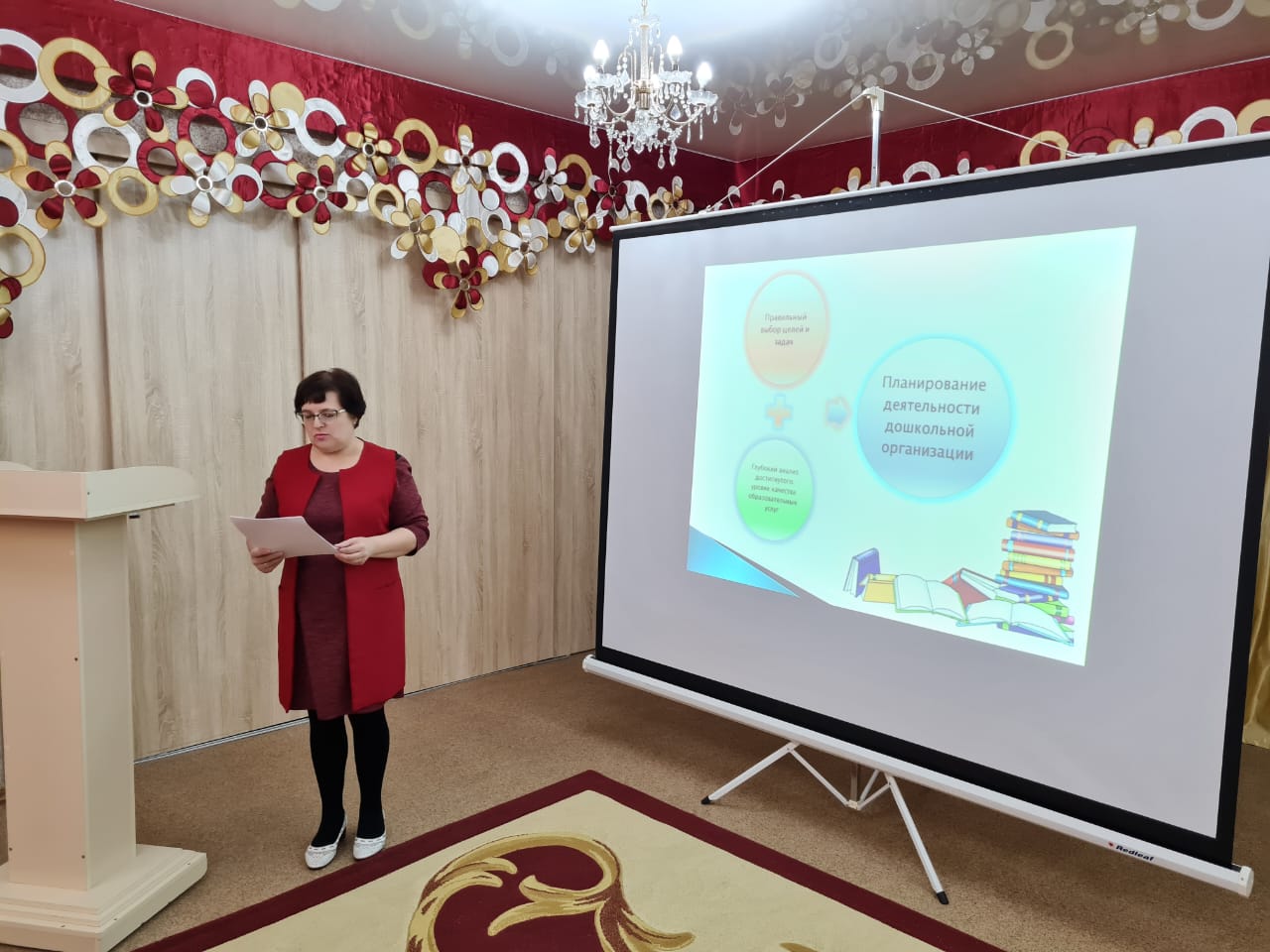 Методист отдела дошкольного воспитания и обучения Жихарева Т.Б. напомнила о должностных обязанностях методиста организации дошкольного воспитания и обучения, о требованиях к квалификации, которые определены приказом № 338 «Об утверждении Типовых квалификационных характеристик должностей педагогов». Далее она пояснила, что свою ежедневную работу методист детского сада осуществляет согласно задачам Программы развития ДО, годового плана и циклограммы работы на месяц.