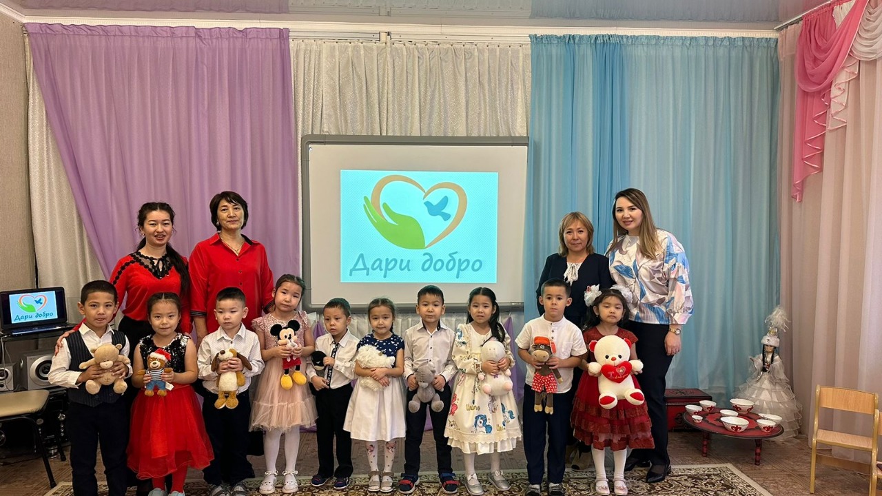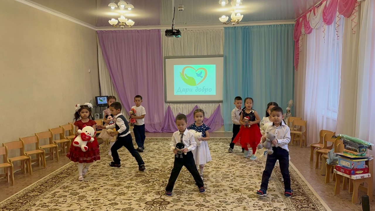 В связи с этим, родители и воспитанниками предшкольной группы «Гүлім», музыкальный руководитель я/с 13 Айгул Ыбыраевна приняли активное участие в декаднике под названием «Дари добро» и посетили ясли-сад № 69. Было организовано праздничное мероприятие, по окончании которого воспитанники я/с 13 вручили заранее подготовленные подарки дошколятам я/с 69. Этот сюрприз оказался приятной неожиданностью. Лица детей были озарены неподдельной радостью!