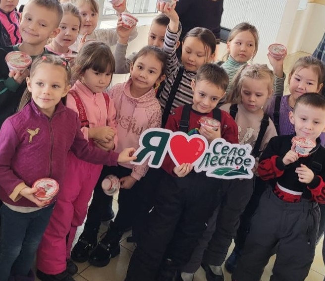 Ребятам предложили провести дегустацию ягодных йогуртов, и каждому подарили вкусный фруктовый творожок.