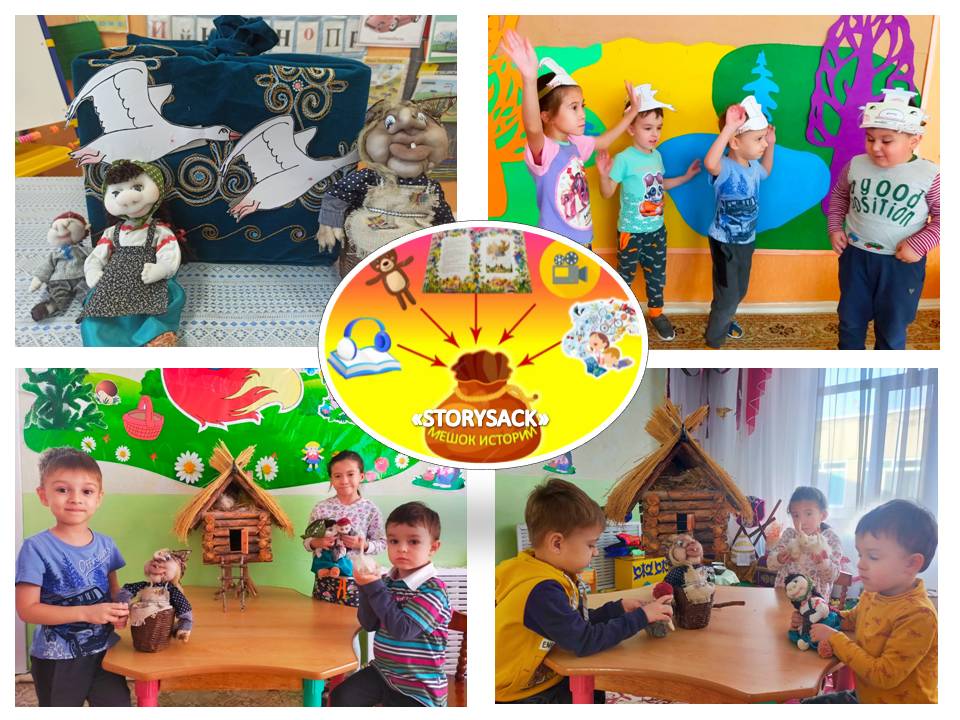 В рамках реализации инновационного проекта «STORYSACK» ребята ясли-сада 54 познакомились со сказкой «Гуси-лебеди». В течении месяца шла плодотворная работа по заранее составленному плану. В начале, слушали сказку, беседовали по содержанию, затем инсценировали, играли в дидактические игры: узнавали сказку по иллюстрациям, правильно называли персонажей, отгадывали описательные загадки о сказочных персонажах сказки, складывали пазлы, играли в лото и т.п. Активно включались в игру и речевые контакты. Данный проект развивает коммуникативные навыки детей. Дети учатся согласовывать между собой действия и ролевые диалоги в ходе инсценировки. Понравилось ребятам сочинять сказку самим, используя персонажи из этой сказки.