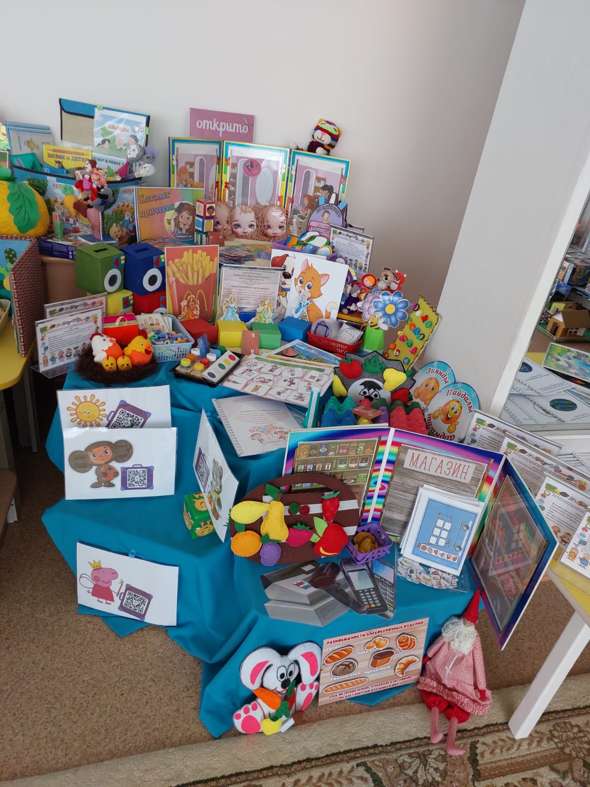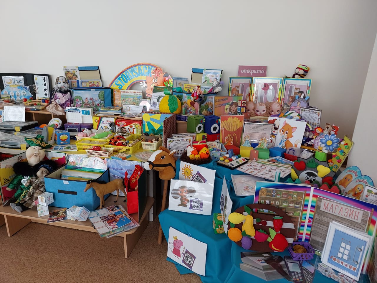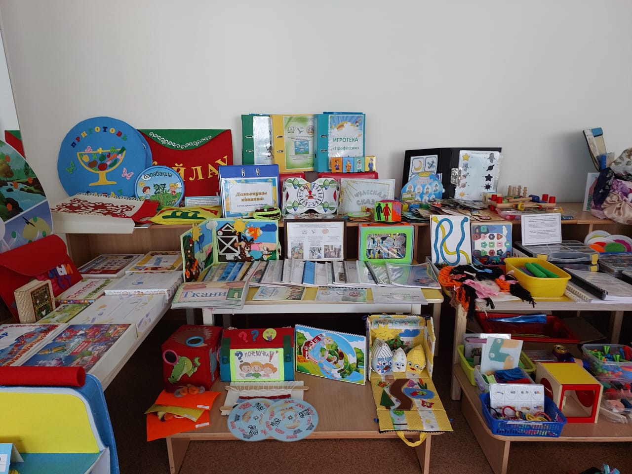 На методической выставке «Экспериментальная площадка как инновационная система работы организации образования: опыт и перспективы» каждая дошкольная организация презентовала свои инновационные проекты, представив методический материал: игры и пособия к ним, авторские разработки программ и кейсов.