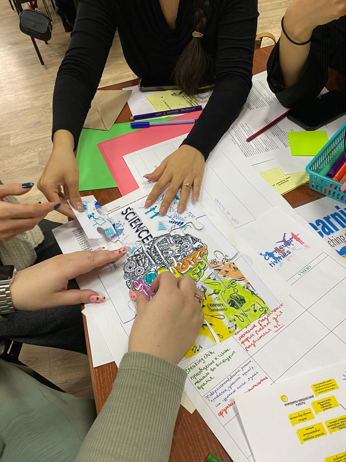 Ж.К., Генрих И.Г.,Ким О.А., Кривонорсова И.С., Калинина И.А., креативные педагоги школы-лицей №2, презентовали и погружали участников дайвинга в эффективные методы, приемы и технологии обучения языку, такие как «Team teaching, team building, scaffolding, interactive and effective forms of learning, productive students’ cooperation, extracurricular activities».