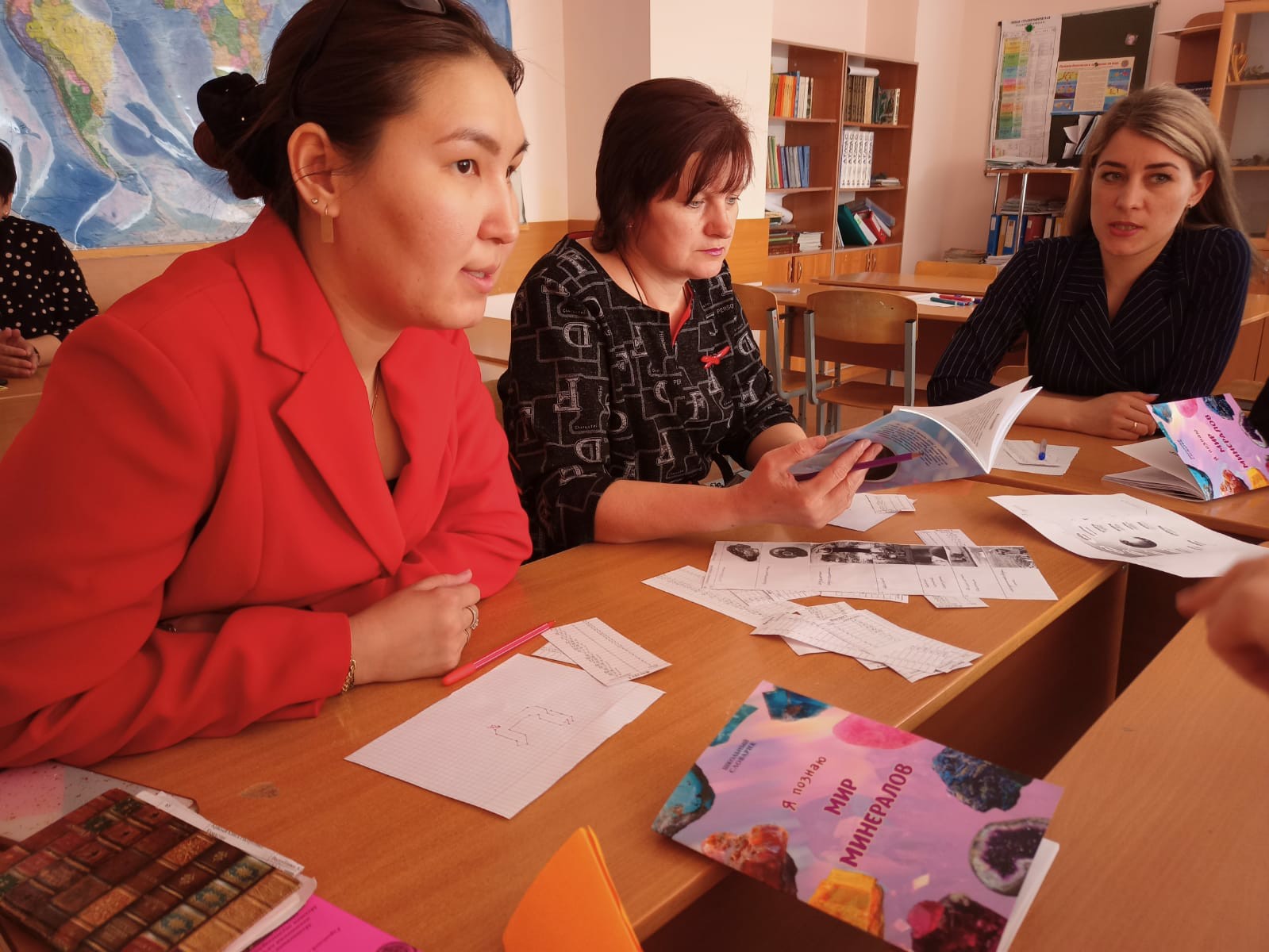 В ходе практической части семинара учителя географии Мукаева Р. Ж. и Нюнюкова М. В., а также учитель истории Ли В.П. провели работу по группам, создав условия, при которых учителя могли разбирать и обсуждать способы формирования мотивации к изучению предметов как в урочной, так и во внеурочной деятельности.