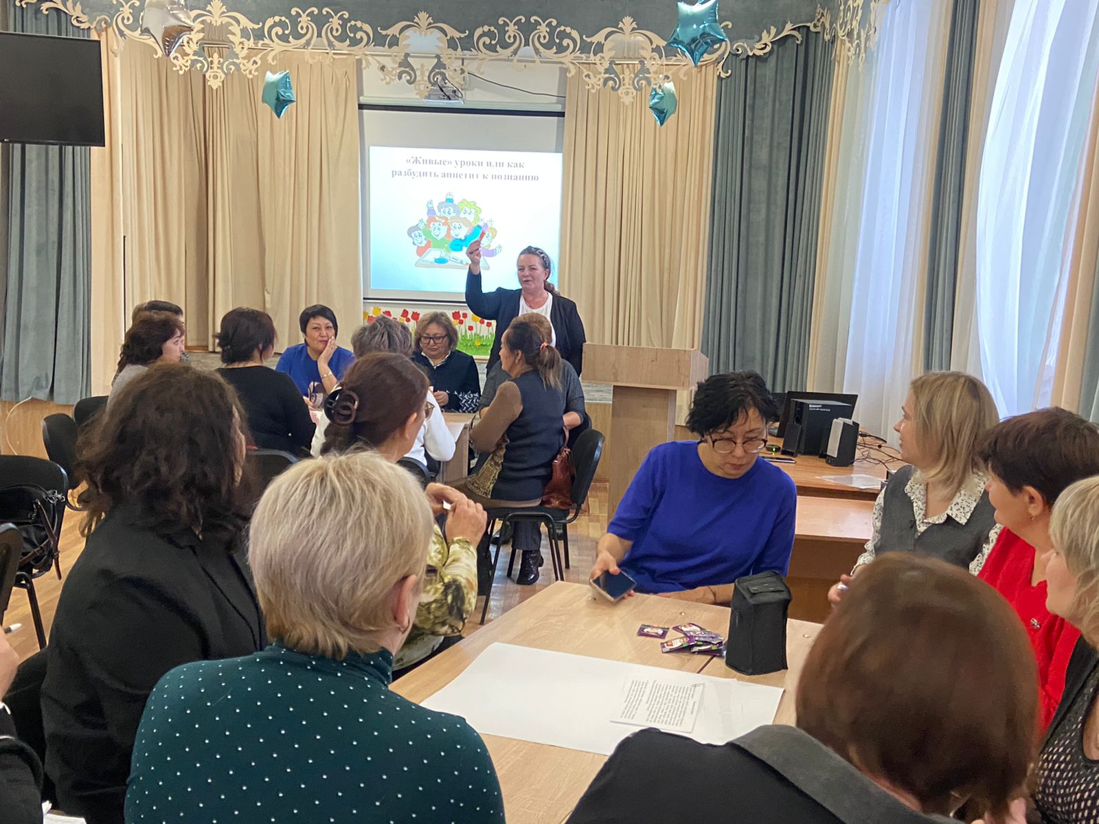К.Т. Алимова,А. Е. Бисенова білім беру процесінің сапасын арттыру бойынша өз жұмыс тәжірибелерін ұсынды , ал Е. Г. Макушева оқуға деген қызығушылықты арттыру бойынша шеберлік сыныбын өткізді.