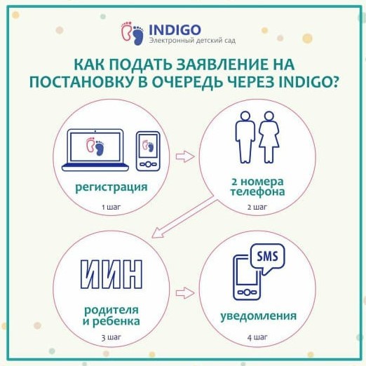 Постановка на очередь и зачисление детей в дошкольные организации осуществляется на веб-портале indigo-kst-goo.e-orda.kz.