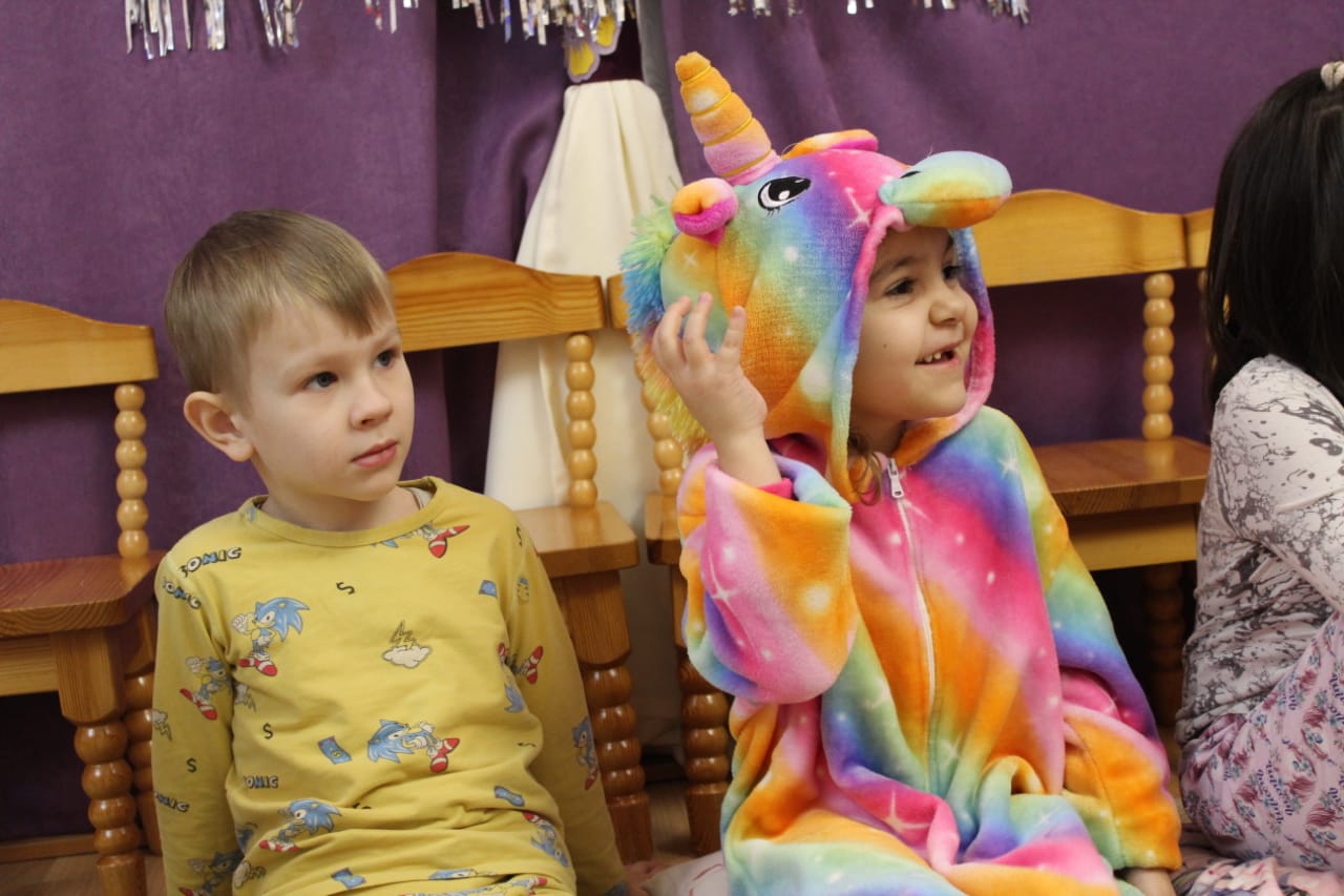 Прощание с новогодней ёлкой в старших и предшкольных группах ясли-сада № 44 прошло в форме весёлой пижамной вечеринки. Обязательным элементом дресс-кода стала пижама или домашняя одежда для всех участников. Ребята играли с подушечкой-думочкой, танцевали, пели, познакомились с Феями добрых снов и ночных кошмаров, попрощались с новогодней ёлкой до следующего года.