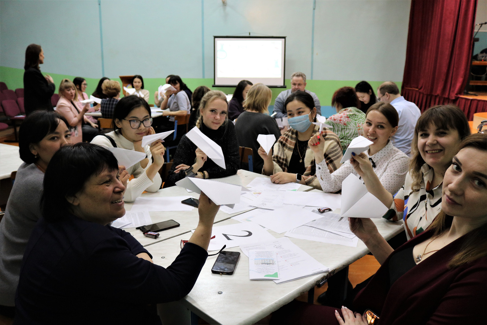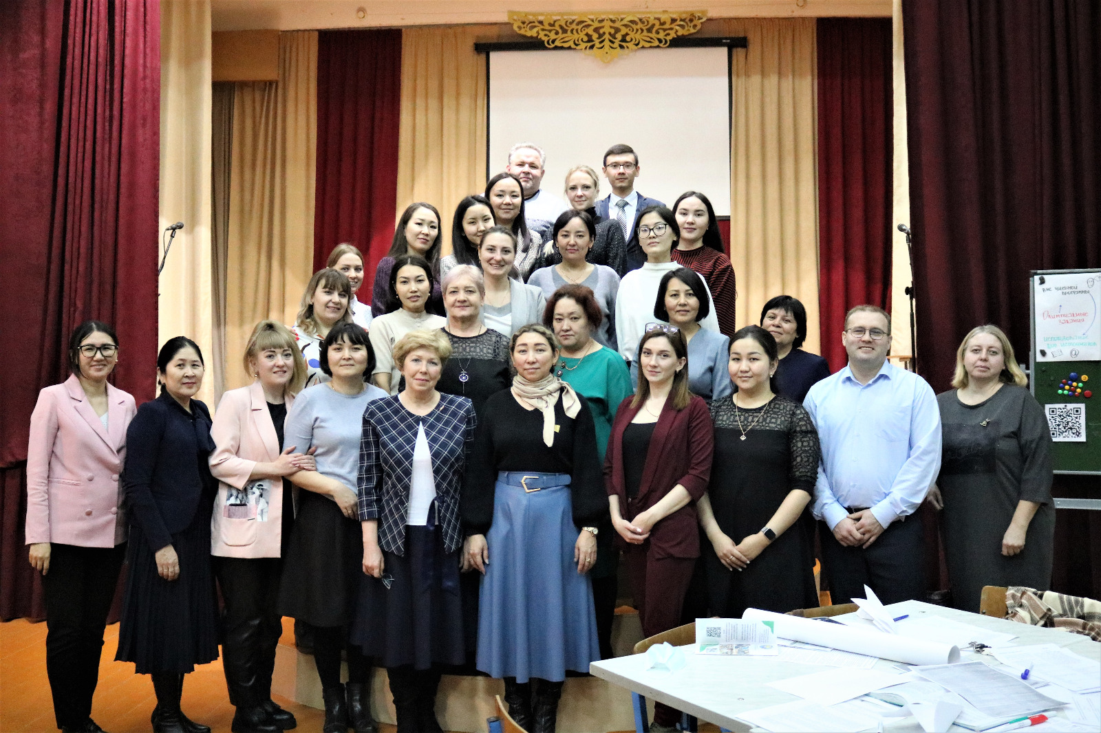 В завершении семинара, гостей ждал сюрприз, с поздравительным номером выступили учителя школы со своими дочерьми.