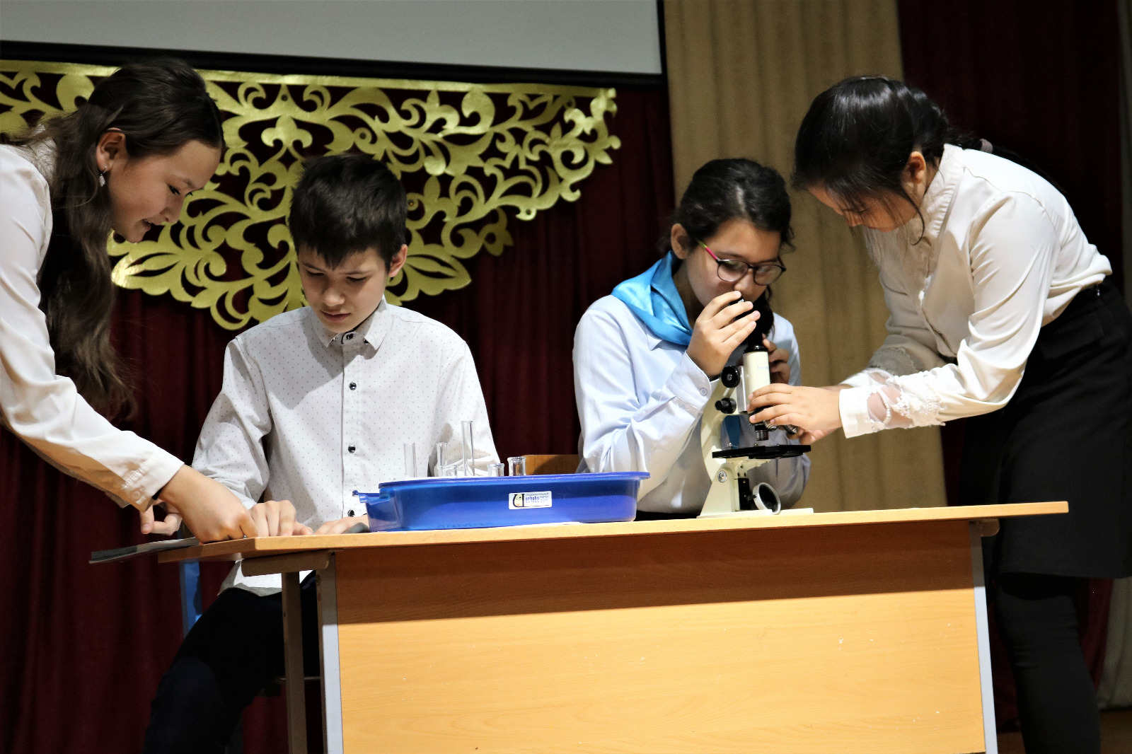 Педагоги Тендитная С.В. и Ибраева Г.Д. рассказали об организации работы с одаренными детьми в рамках их творческой реализации; Шефер Л.Ю и Жанабаев А.Т. рассказали о реализации научно-исследовательской работы учащихся через практическую деятельность.