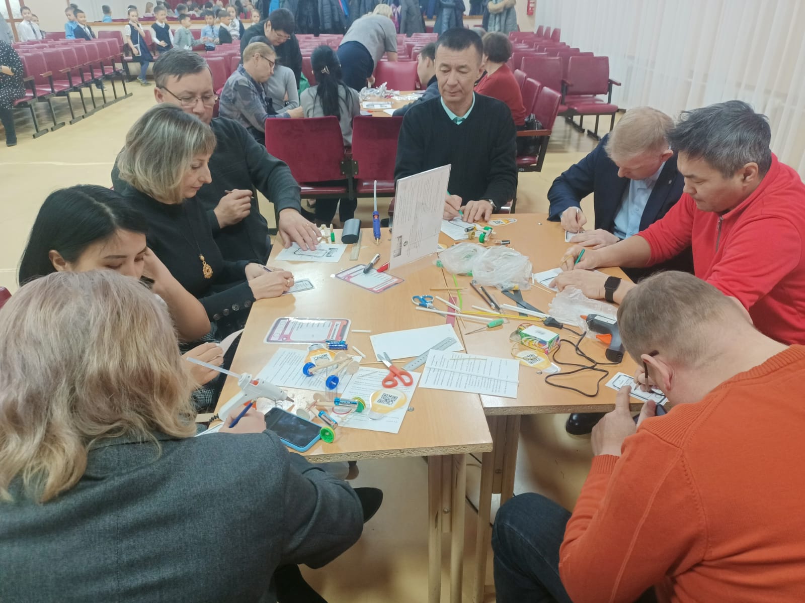 В практической части проведены одновременно мастер-классы по группам - под руководством Беззубенко А.Г. «Моделирование животных из проволоки», Мальцевой А.В., «Изготовление цветка из фольги», Каменова Д.Т., «Изготовление машины из подручных материалов», Алексеевой И.В., «Изготовление коллажа в технике Зентангл». По итогам мастер-классов проведена защита и оценивание работ.