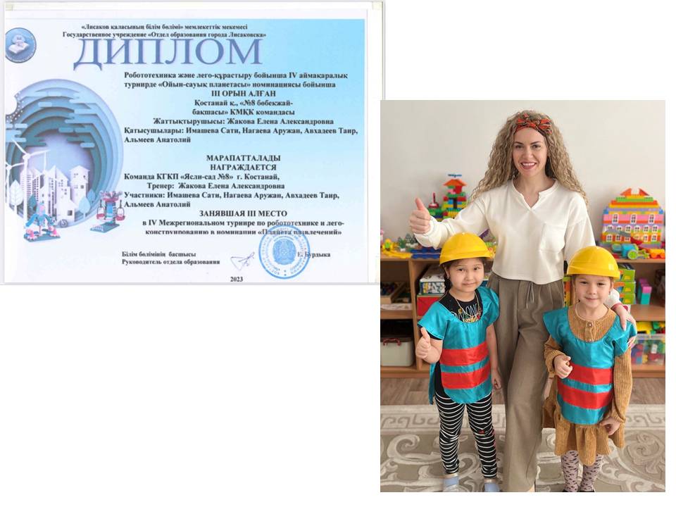 Воспитанники КГКП «Ясли-сад №8» Имашева Сати, Авхадеев Таир, Нагаева Аружан и Альмеев Анатолий вместе с тренером Жаковой Еленой Александровной приняли участие в IV Межрегиональном дистанционном турнире по робототехники, програмированию и инновационным технологиям для дошкольных организаций в категории «Планета развлечений».