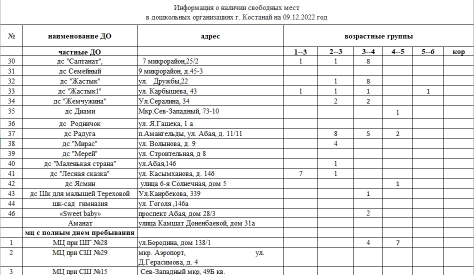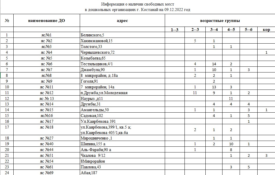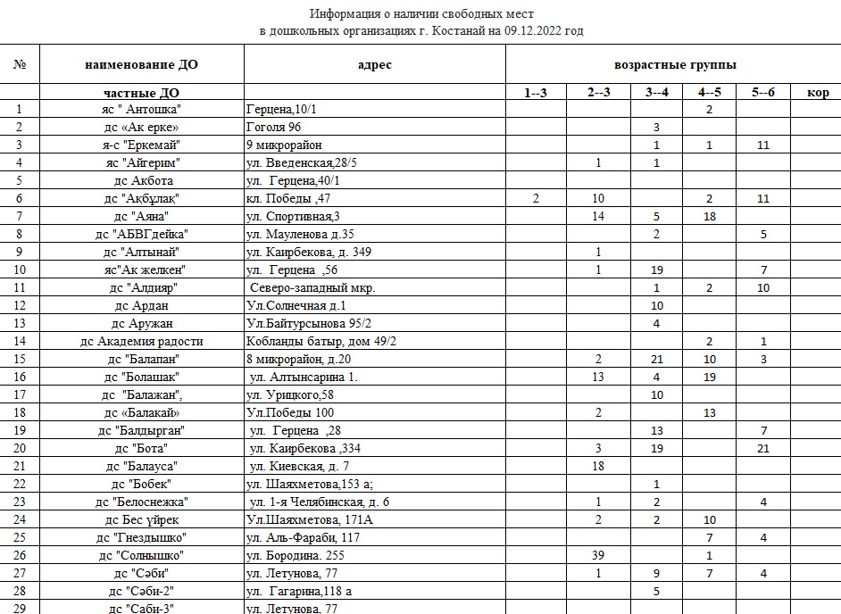 На сегодняшний день в дошкольных организациях г.Костаная имеются свободные места,