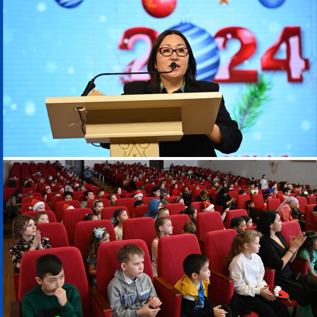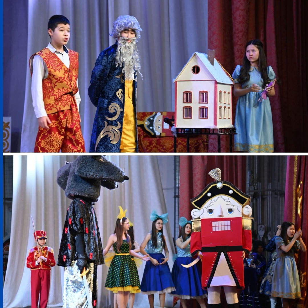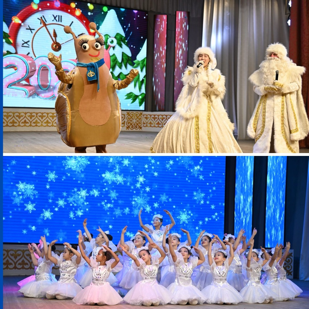 Для участников праздника было подготовлено театрализованное представление «Новогоднее приключение Щелкунчика» с Дедом Морозом, Снегурочкой, Cимволом года по казахскому календарю Улиткой и другими сказочными героями. В ходе праздничной программы дети с огромной радостью водили хороводы, пели песни, принимали участие в конкурсах. Неожиданным сюрпризом для детей во время концерта стал вынос мороженого.