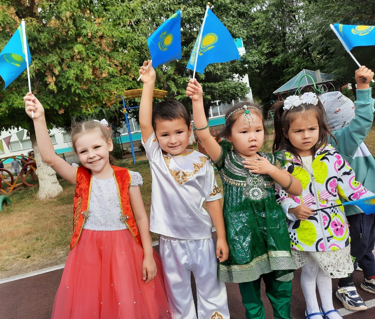 А также во время праздника вспомнили о первом букваре великого учителя Ахмета Байтурсынова, прочли стихи, уделяя особое внимание государственному языку. Дети играли в речевые игры, с удовольствием повторяя, знакомые и любимые слова приветствия, отрывки из известных детских произведений на разных языках, слушали национальную музыку, исполняли элементы национальных танцев народов, проживающих на территории Республики Казахстан, пели песни.